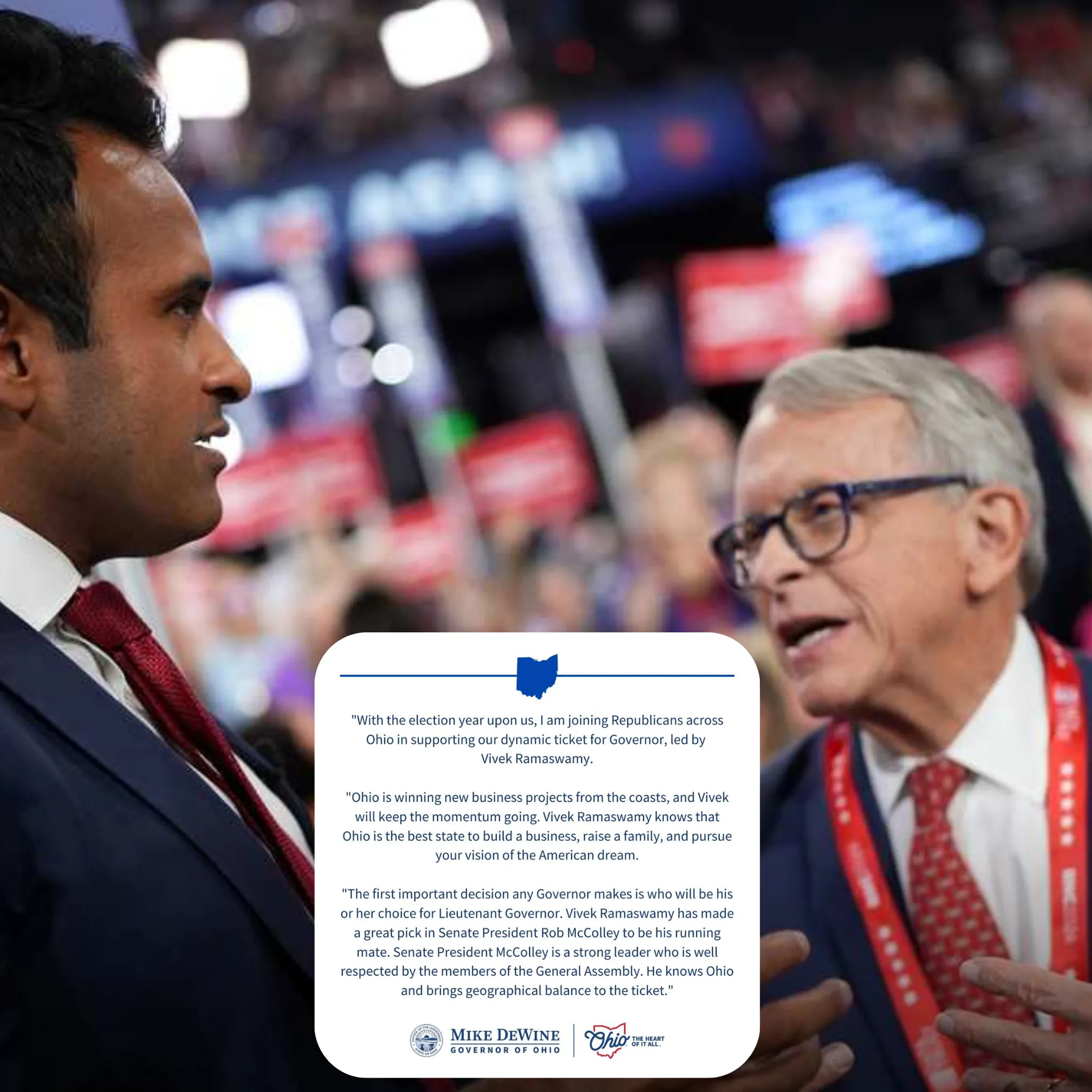 A key theme in DeWine’s message is economic momentum. He emphasized Ohio’s recent success in attracting new business investments from coastal states, arguing that Ramaswamy is uniquely positioned to keep that trend alive. According to DeWine, Ramaswamy understands why Ohio is “the best state to build a business, raise a family, and pursue your vision of the American Dream.” This framing ties economic growth directly to leadership style—casting Ramaswamy as both a continuation of progress and a catalyst for future expansion.