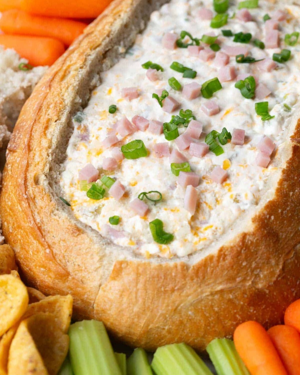 1 large round loaf of crusty bread (like Tuscan or sourdough, 1.5-2 lbs) or 1 large King’s Hawaiian Sweet Bread round