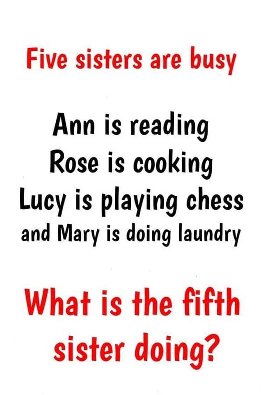 Jaime is doing laundry. What’s the fifth sister doing?