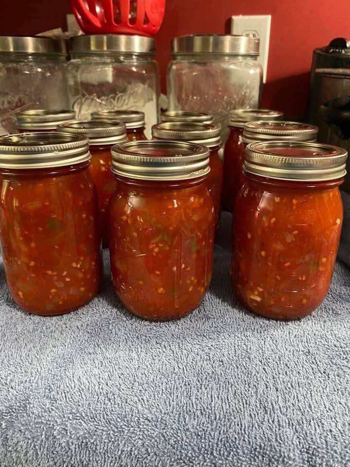 This recipe is a celebration of late-summer produce and old-school kitchen magic. With a gallon of tomatoes, plenty of peppers, and a tangy vinegar kick, it simmers into a rich, chunky salsa that’s perfect for chips, tacos, or gifting in jars. The long simmer deepens the flavor, and the water bath seals in freshness for months to come.