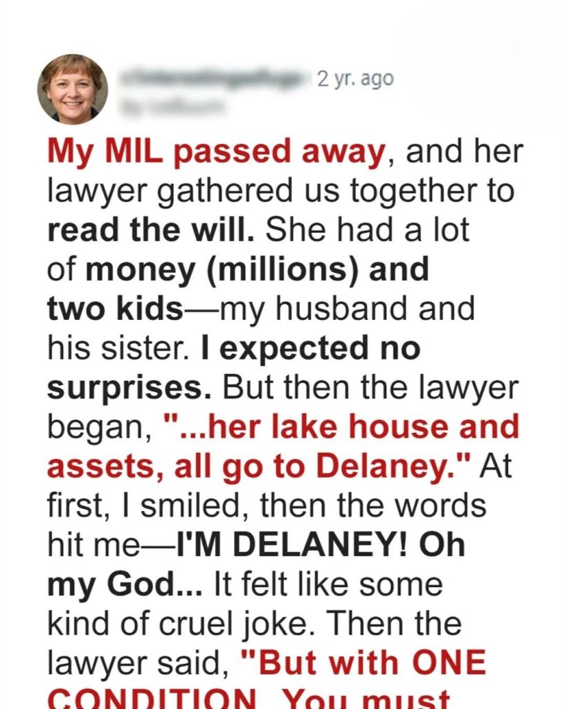 When Gloria, my elegant and distant mother-in-law, passed away, I never expected her will to name me as the heir to everything — the house, the savings, even the lake property. The shock deepened when I learned the catch: I had to remain married to my husband, Caleb, and live 90 days under one roof with his bitter sister, Tessa. Both resented me, and soon I was drowning in their anger, rumors, and sabotage. But Gloria had left me something more than assets — a sealed envelope and a flash drive.