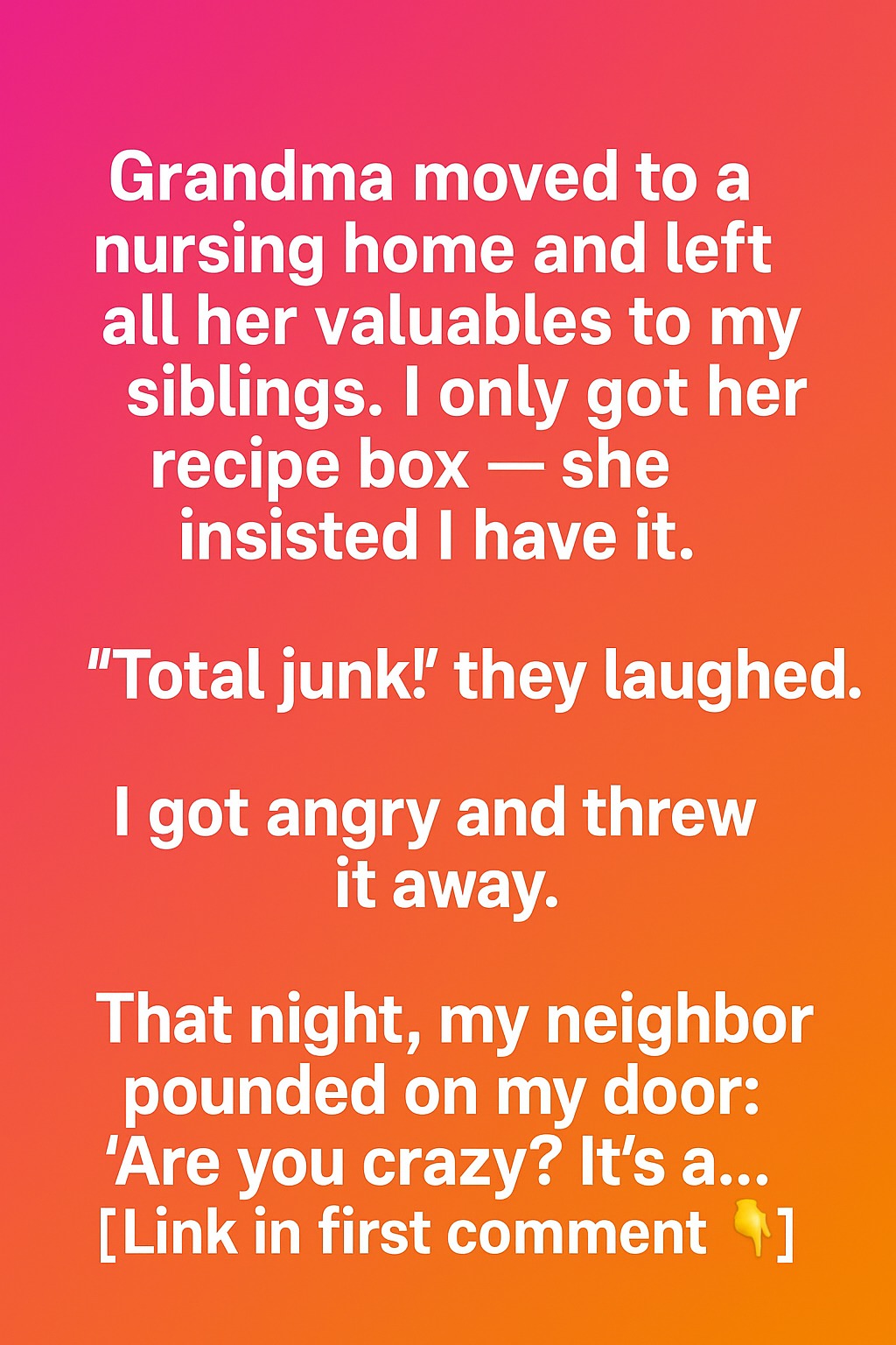 When my grandmother moved into a nursing home, she gave her jewelry and antiques to my siblings. To me, she left only a small wooden recipe box. At first, I didn’t understand why she insisted that it should be mine. My siblings laughed and called it “junk,” and their words stayed with me. Feeling upset, I left the box aside without thinking twice.